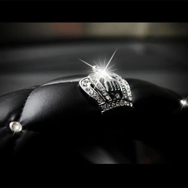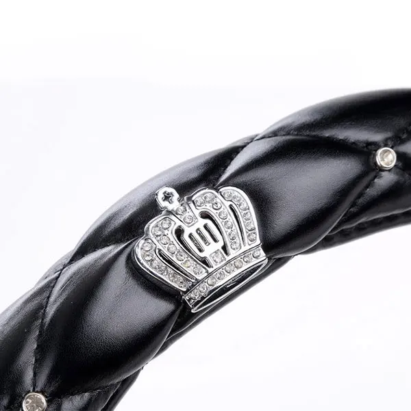 | 38cm Luxury Crystal Crown Studded Rhinestone PU Leather Car Steering Wheel Cover Diamond Steering C |
