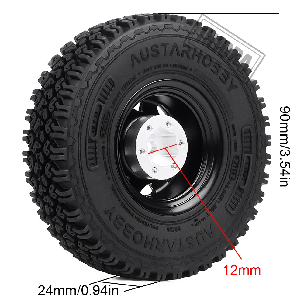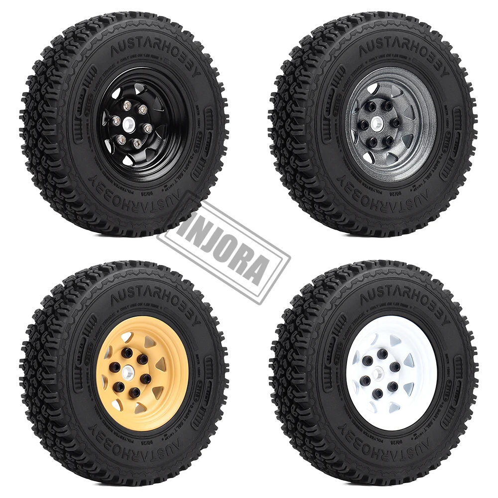 | INJORA Metal 1.55 Beadlock Rim & Rubber Wheel Tires 90*24mm for RC Crawler Car D90 TF2 Tamiya CC01 |