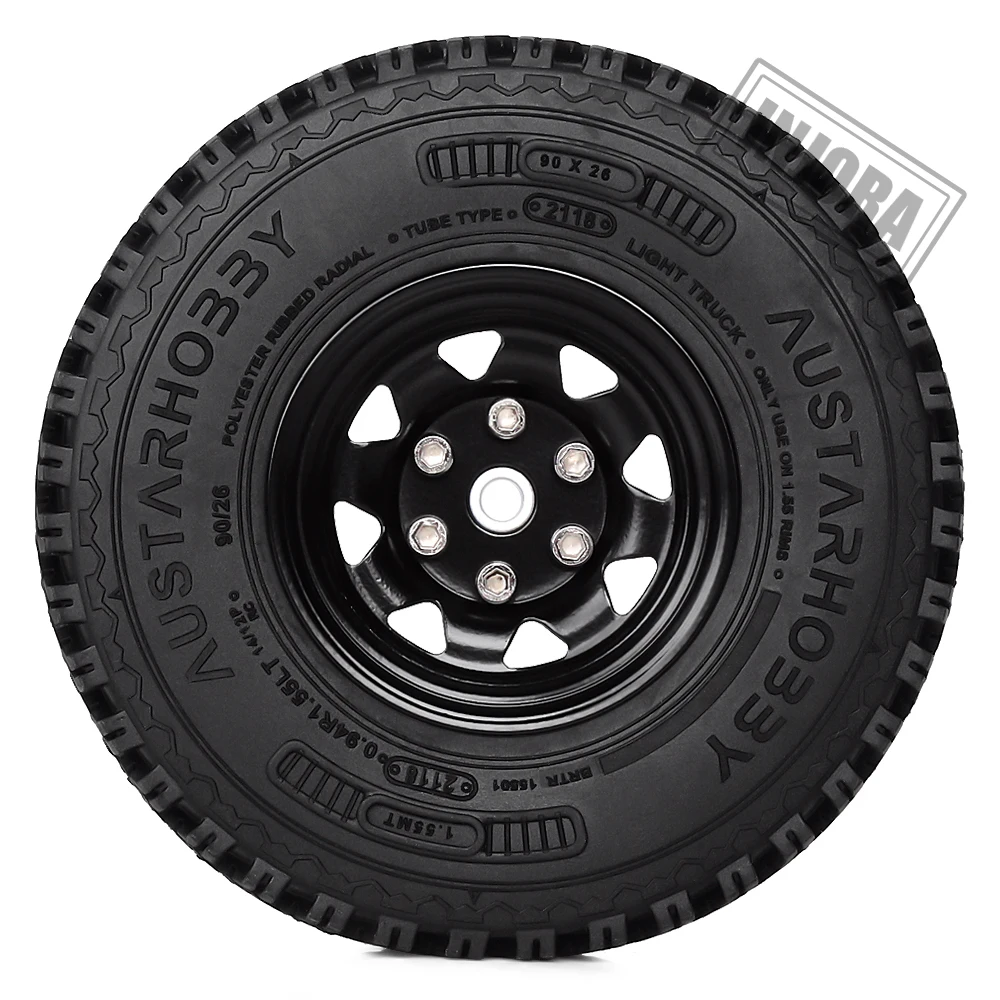 INJORA Metal 1.55 Beadlock Rim & Rubber Wheel Tires 90*24mm for RC Crawler Car D90 TF2 Tamiya CC01