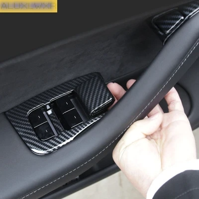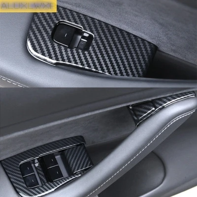 | ABS carbon fiber Car Inner Door Armrest Window Lift Button Cover Kit Trim car Accessories For tesla |