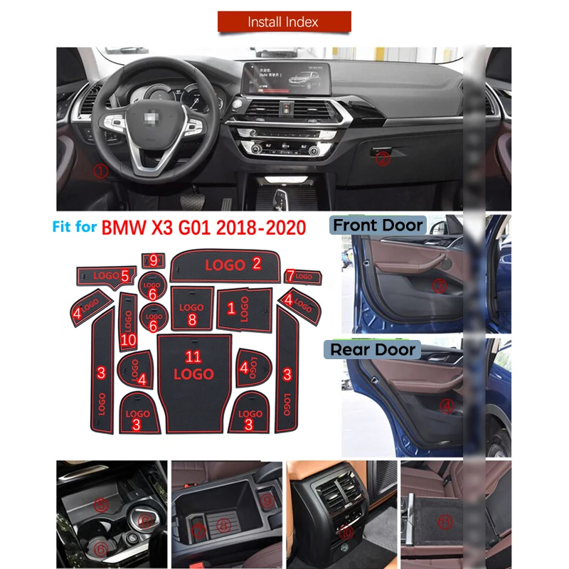 | Anti-Slip Rubber Gate Slot Cup Mat for BMW X3 G01 2018 2019 2020 Car Accessories Stickers X3M xDriv |