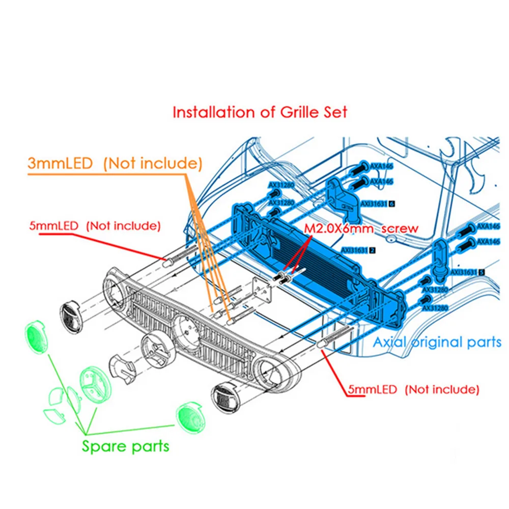Best Price Comparison With Grille Turn Lights Taillights Cover Set for 110 Axial SCX10 II UMG10 4x4 UMG10 6X6 RC Car DIY Pa